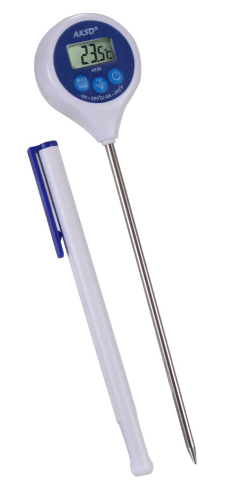 TERMÔMETRO DIGITAL TIPO ESPETO COM HASTE DE PENETRAÇÃO DE AÇO INOX COM 125MM DE COMPRIMENTO E 3.5MM DE DIÂMETRO, REGISTROS DE MÁXIMA E MÍNIMA E AMPLA FAIXA DE MEDIÇÃO DE -50 A 200°C.